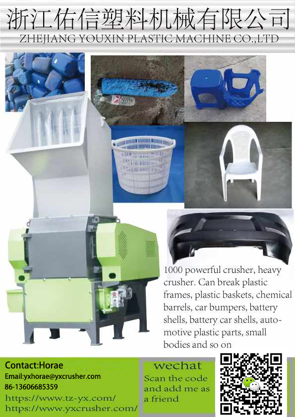 In de loop der jaren heeft Youxin Company zich stevig gevestigd op het gebied van plastic brekers door professionele productietechnieken, divers productaanbod en een geest van continue innovatie. Het biedt betrouwbare plastic verpletterende apparatuur voor tal van ondernemingen, wat bijdraagt aan de ontwikkeling van de plastic recycling- en hergebruikindustrie.